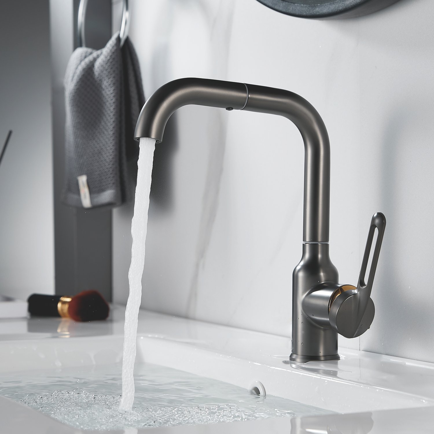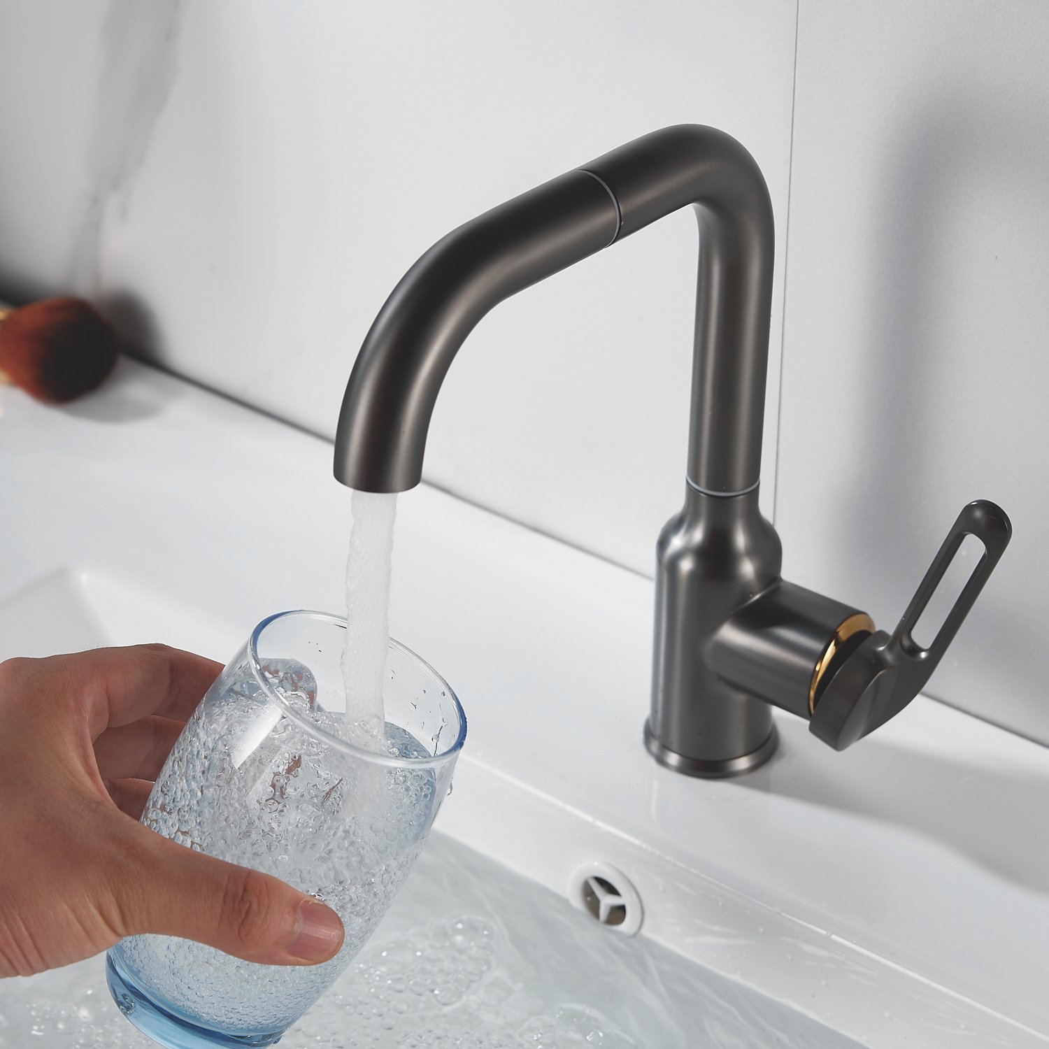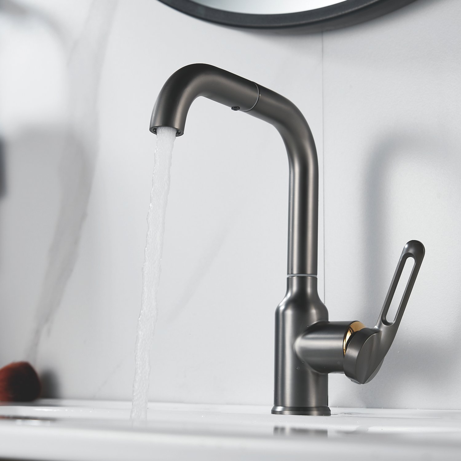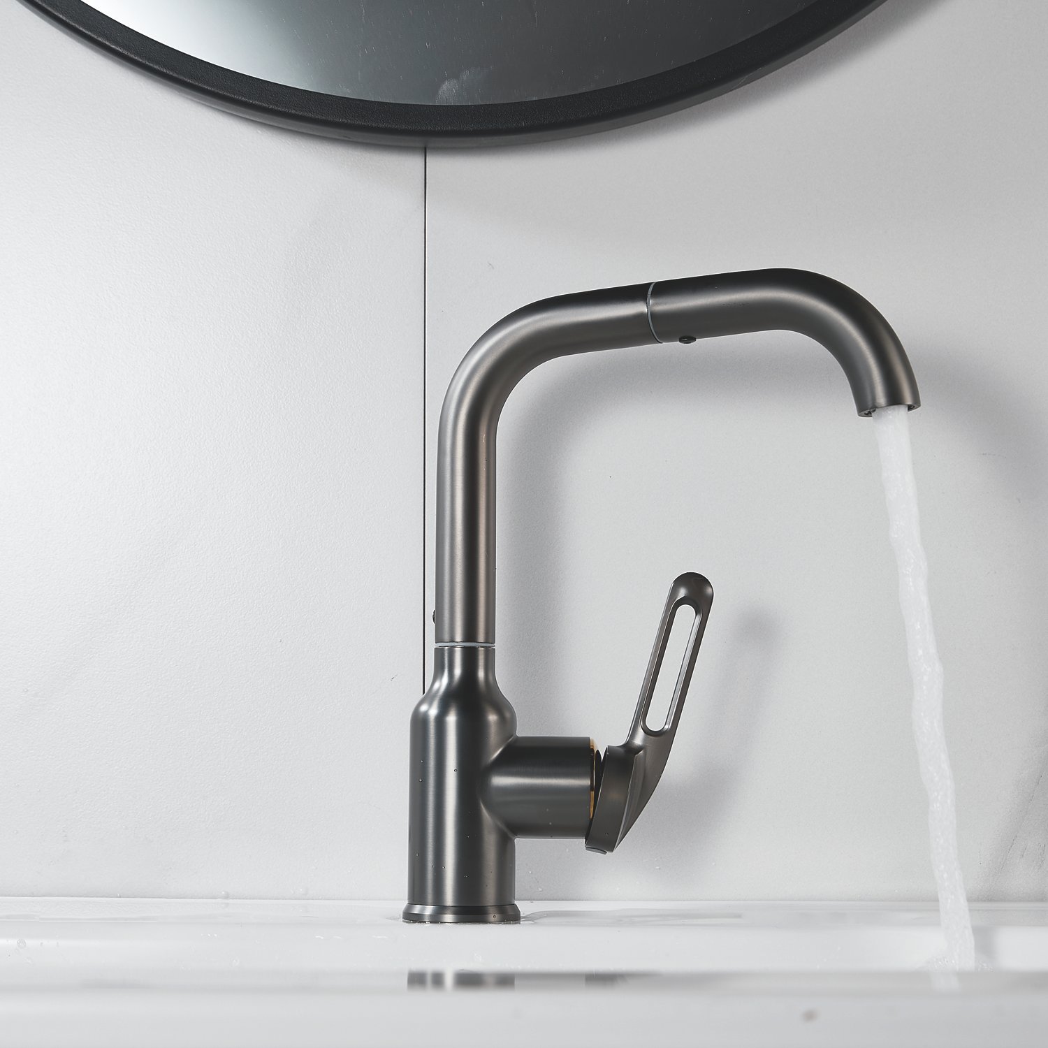 Смеситель для раковины Raffine F201T в цвете "оружейная сталь" — стильное и надёжное решение для вашей ванной комнаты. Изготовлен из высококачественной нержавеющей стали, что гарантирует его прочность и долговечность.