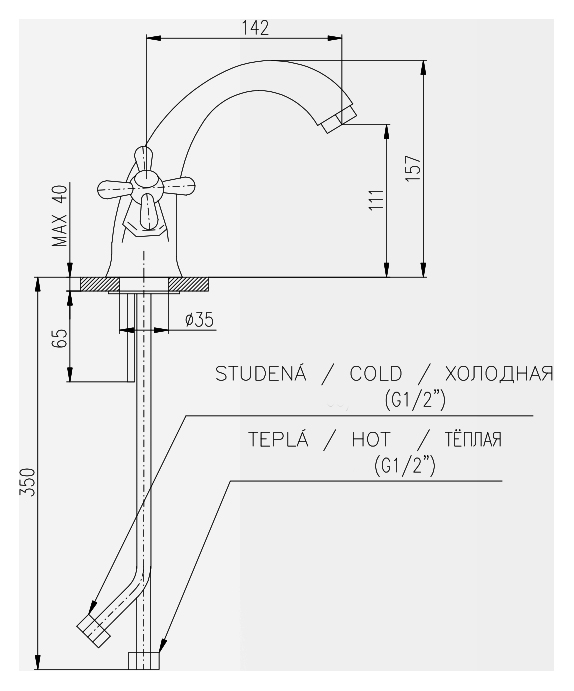 Смеситель для раковины Rav Slezak Morava retro MK528.5Z монолитный, двухвентильный, изготовлен из высококачественной латуни, которая исключает какую-либо коррозию. Качественные керамические кран буксы, гарантируют долговечность и мягкий поток воды, производство Германия. Гибкая подводка G1/2, длиной 350 мм. В комплекте смеситель, гибкая подводка и крепления.
