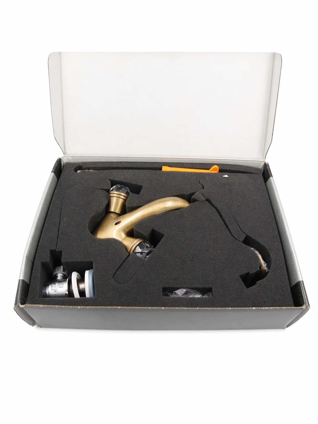 Этот смеситель — воплощение элегантности и стиля. Благородная бронза, округлые формы и сияющие кристаллы Swarovski на ручках создают утончённый образ, который идеально впишется в классический или ретро-интерьер.
