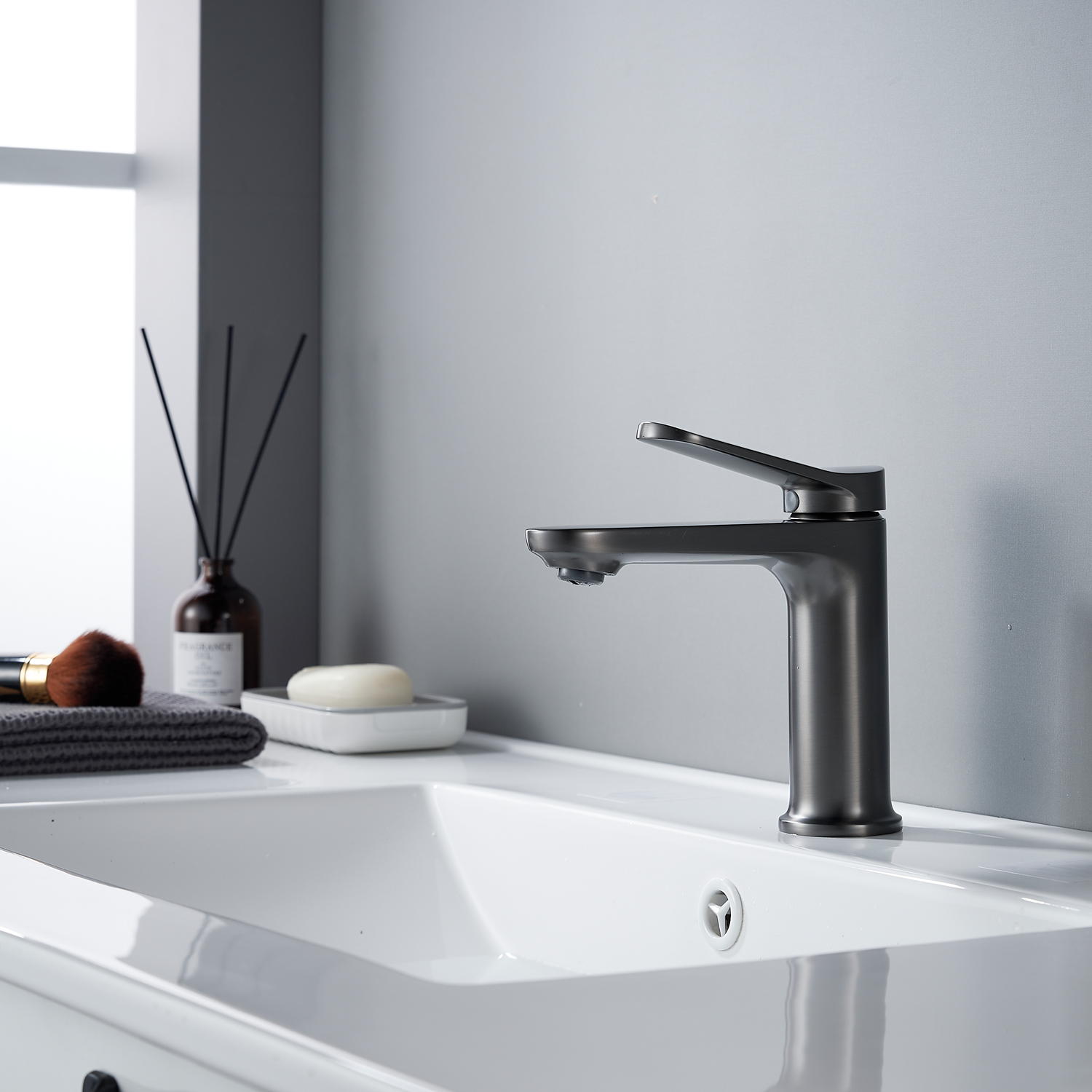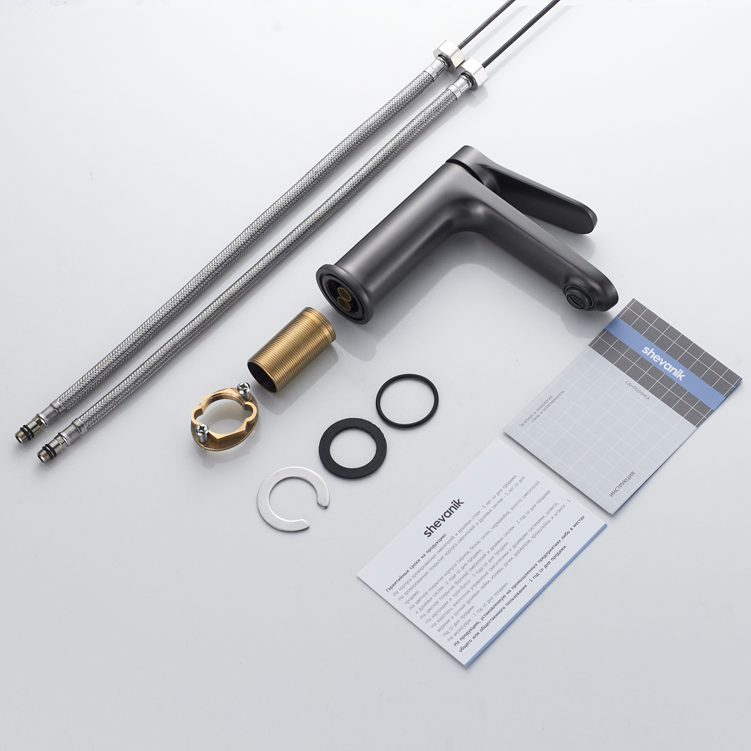 Смеситель для раковины Shevanik S4301T в современном цвете "оружейная сталь" — это воплощение современного дизайна и непревзойдённой функциональности. Его плавные линии и изысканный внешний вид подчеркнут элегантность вашей ванной комнаты. Смеситель оснащён высококачественным керамическим картриджем и удобным рычажным управлением, что обеспечивает долговечность и лёгкость в использовании.