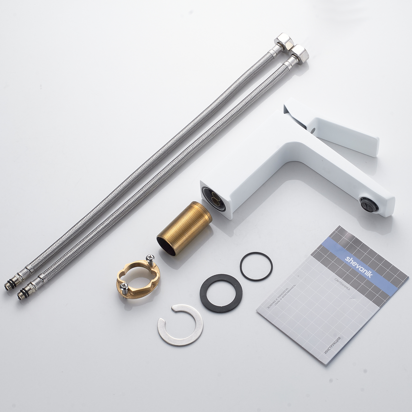 Смеситель для раковины Shevanik S4401C в белом матовом цвете — это воплощение современного дизайна и надёжности в каждой детали. Элегантная минималистичная форма, выполненная из высококачественной латуни, гарантирует долговечность и устойчивость к коррозии. Плавное рычажное управление с керамическим картриджем обеспечивает точное регулирование температуры и напора воды, делая каждое использование комфортным и приятным. Фиксированный излив оснащён аэратором из прочного ABS-пластика, который не только смягчает поток воды, но и помогает экономить её расход. Монтаж осуществляется при помощи надёжной гайки, а в комплекте предусмотрена гибкая подводка длиной 45 см со стандартным подключением 1/2", что делает установку простой и удобной. Надёжность смесителя подтверждена 5-летней гарантией, что является залогом его длительного и беспроблемного использования. Этот смеситель станет не только функциональным элементом вашей ванной комнаты, но и стильным акцентом, подчёркивающим современный вкус владельца.