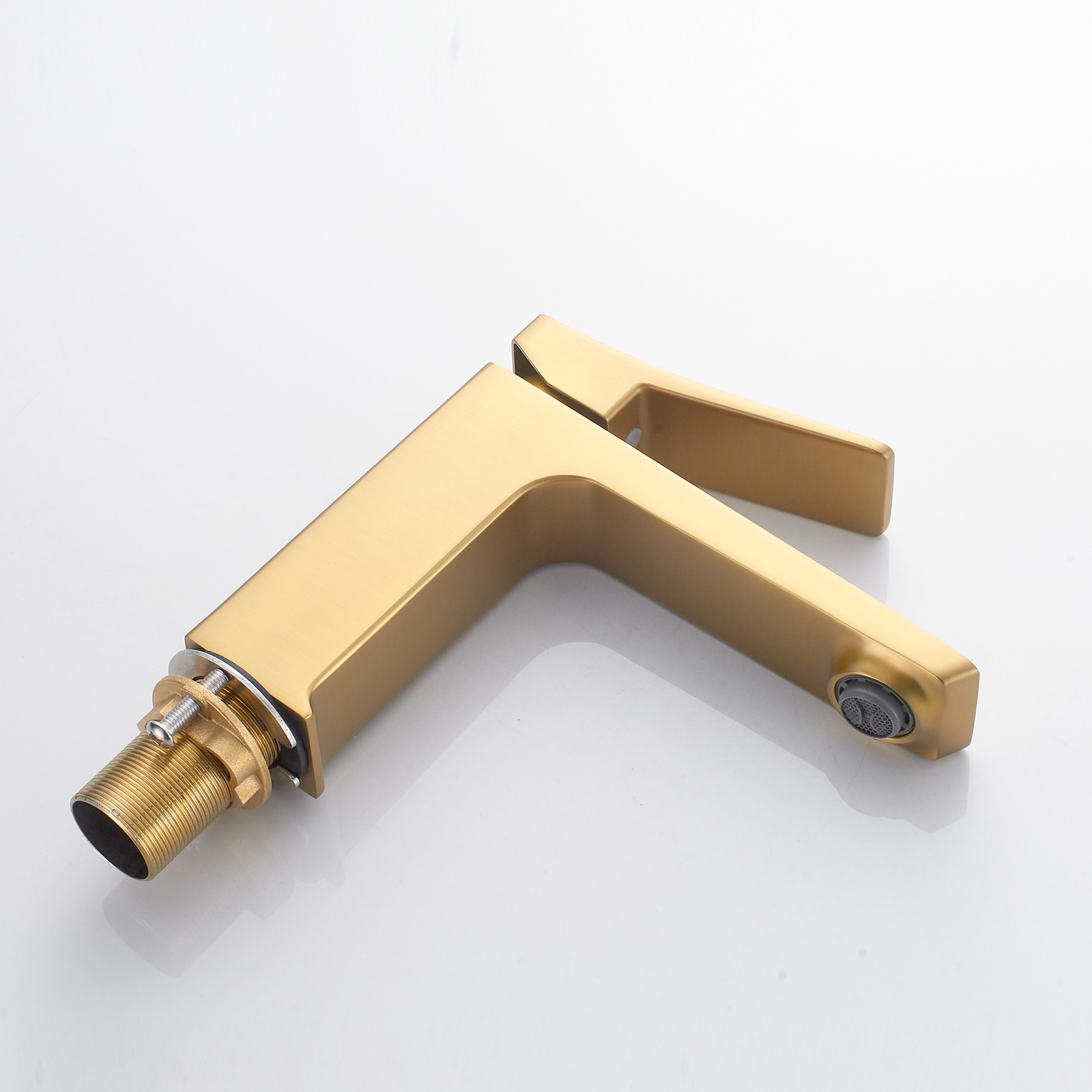 Смеситель для раковины Shevanik S4401G в цвете "золотой сатин" (брашированное золото) — это воплощение современного дизайна и надёжности в каждой детали. Элегантная минималистичная форма, выполненная из высококачественной латуни, гарантирует долговечность и устойчивость к коррозии. Плавное рычажное управление с керамическим картриджем обеспечивает точное регулирование температуры и напора воды, делая каждое использование комфортным и приятным. Фиксированный излив оснащён аэратором из прочного ABS-пластика, который не только смягчает поток воды, но и помогает экономить её расход. Монтаж осуществляется при помощи надёжной гайки, а в комплекте предусмотрена гибкая подводка длиной 45 см со стандартным подключением 1/2", что делает установку простой и удобной. Надёжность смесителя подтверждена 5-летней гарантией, что является залогом его длительного и беспроблемного использования. Этот смеситель станет не только функциональным элементом вашей ванной комнаты, но и стильным акцентом, подчёркивающим современный вкус владельца.