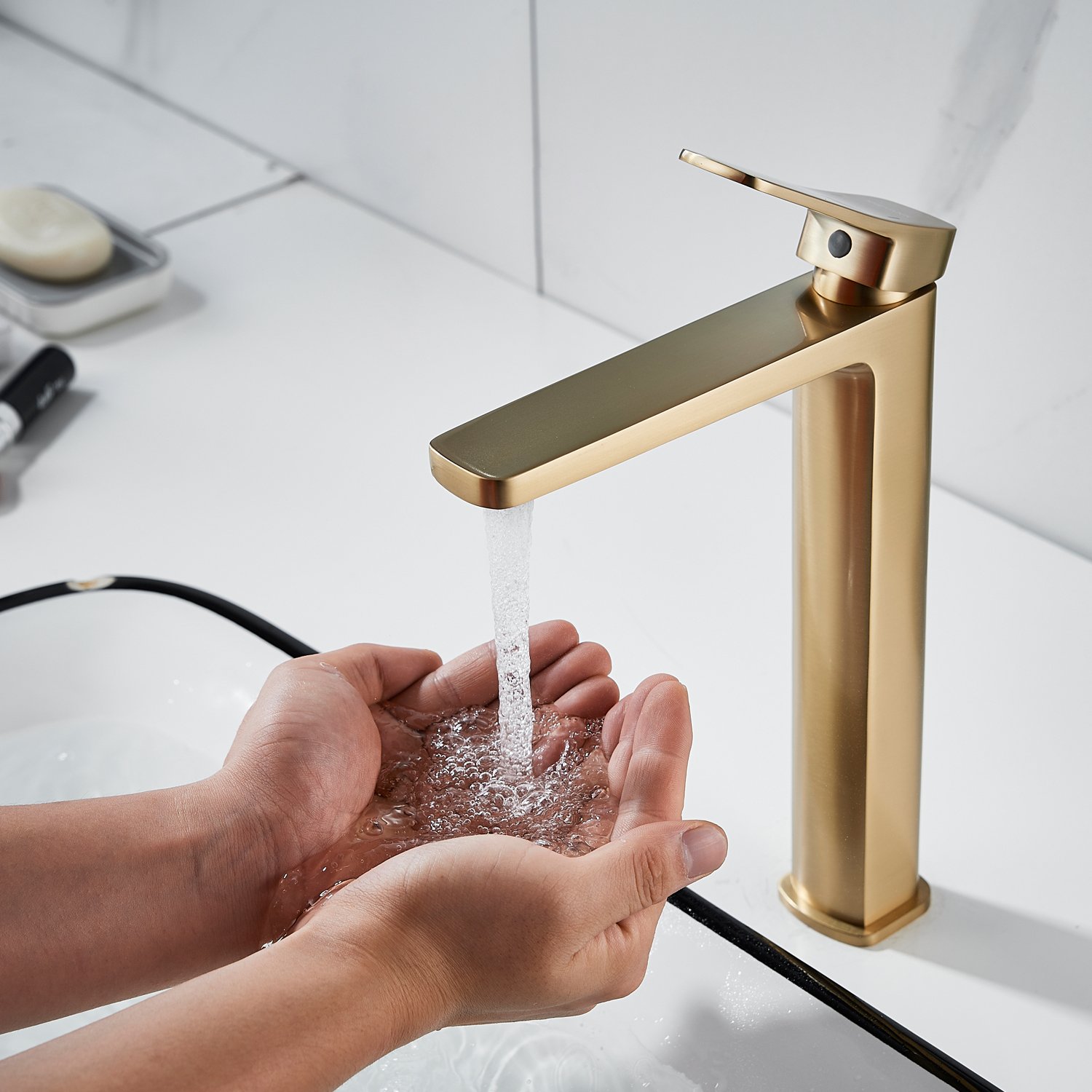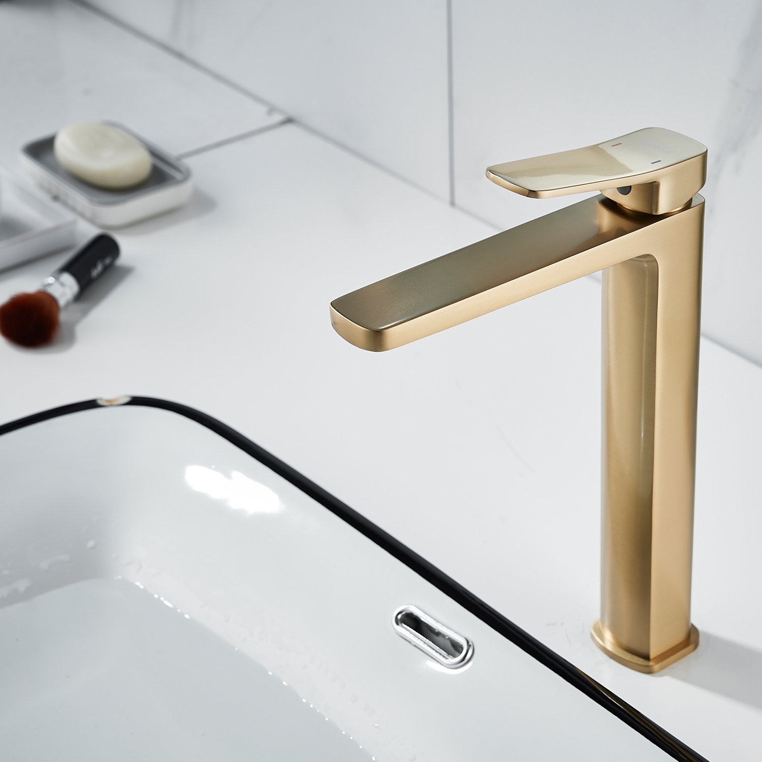 Смеситель для раковины-чаши Shevanik S9911G выполнен в стильном цвете золотой сатин и изготовлен из качественной латуни, что гарантирует его прочность и долговечность. Механизм управления смесителем прост и удобен в использовании благодаря керамическому картриджу и рычажному управлению. Вы легко сможете настроить нужную температуру и напор воды. Данный смеситель станет прекрасным дополнением для вашей раковины-чаши и будет гармонично смотреться в любом интерьере. Кроме того, на смеситель предоставляется гарантия от производителя - 5 лет.
