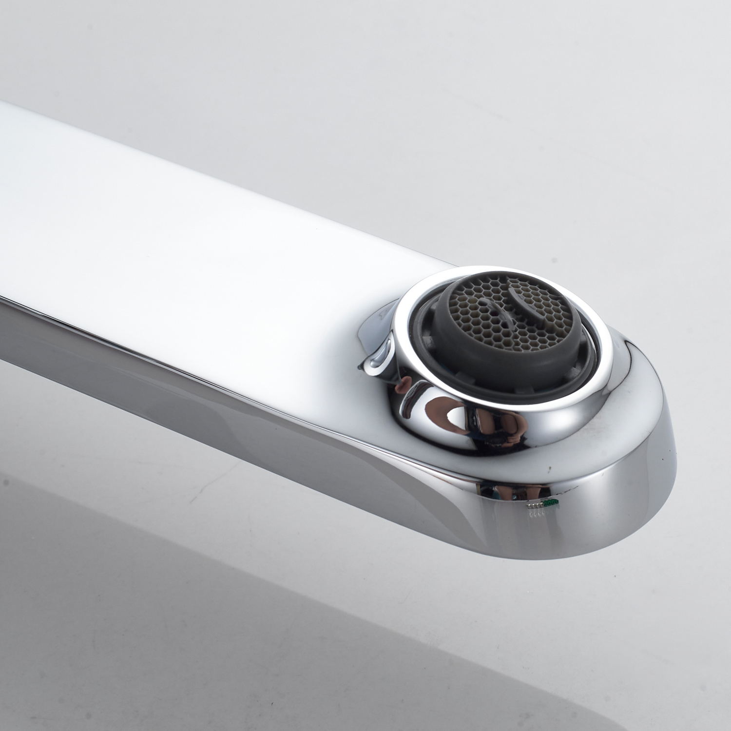 Фиксированный излив с продуманной формой плавно направляет струю, а съёмный аэратор делает воду мягкой и насыщенной, предотвращая брызги и экономя расход. Благодаря встроенному уровню внутри корпуса монтаж проходит легко и точно — вы можете быть уверены, что смеситель будет установлен идеально ровно.