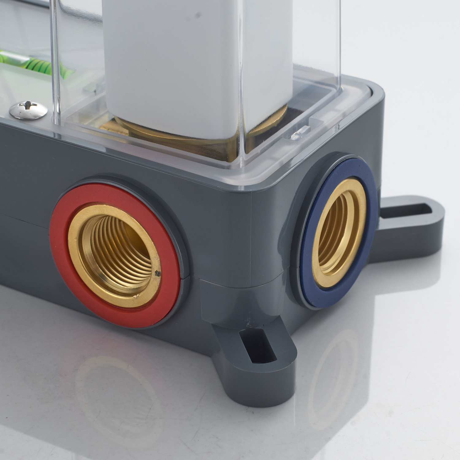 Крепление рассчитано на встраивание в стену под два отверстия, что упрощает интеграцию в любую современную систему водоснабжения.