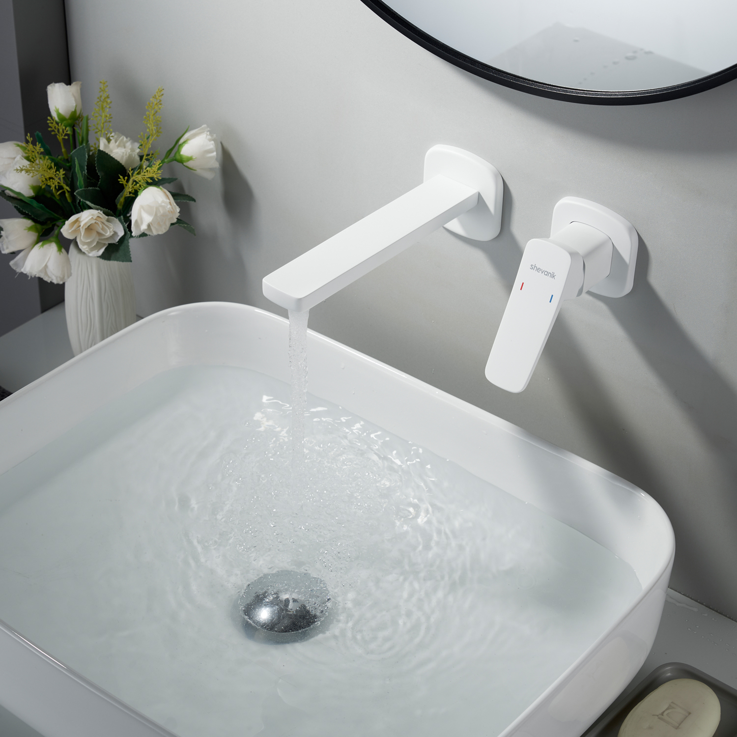 Встраиваемый смеситель для раковины Shevanik S9941C в белом матовом цвете — это гармония современного дизайна, безупречной функциональности и долговечности. Скрытый в стене корпус из высококачественной латуни не только обеспечивает надёжность, но и придаёт интерьеру ванной комнаты чистоту линий и минимализм, подчёркивая эстетику пространства.