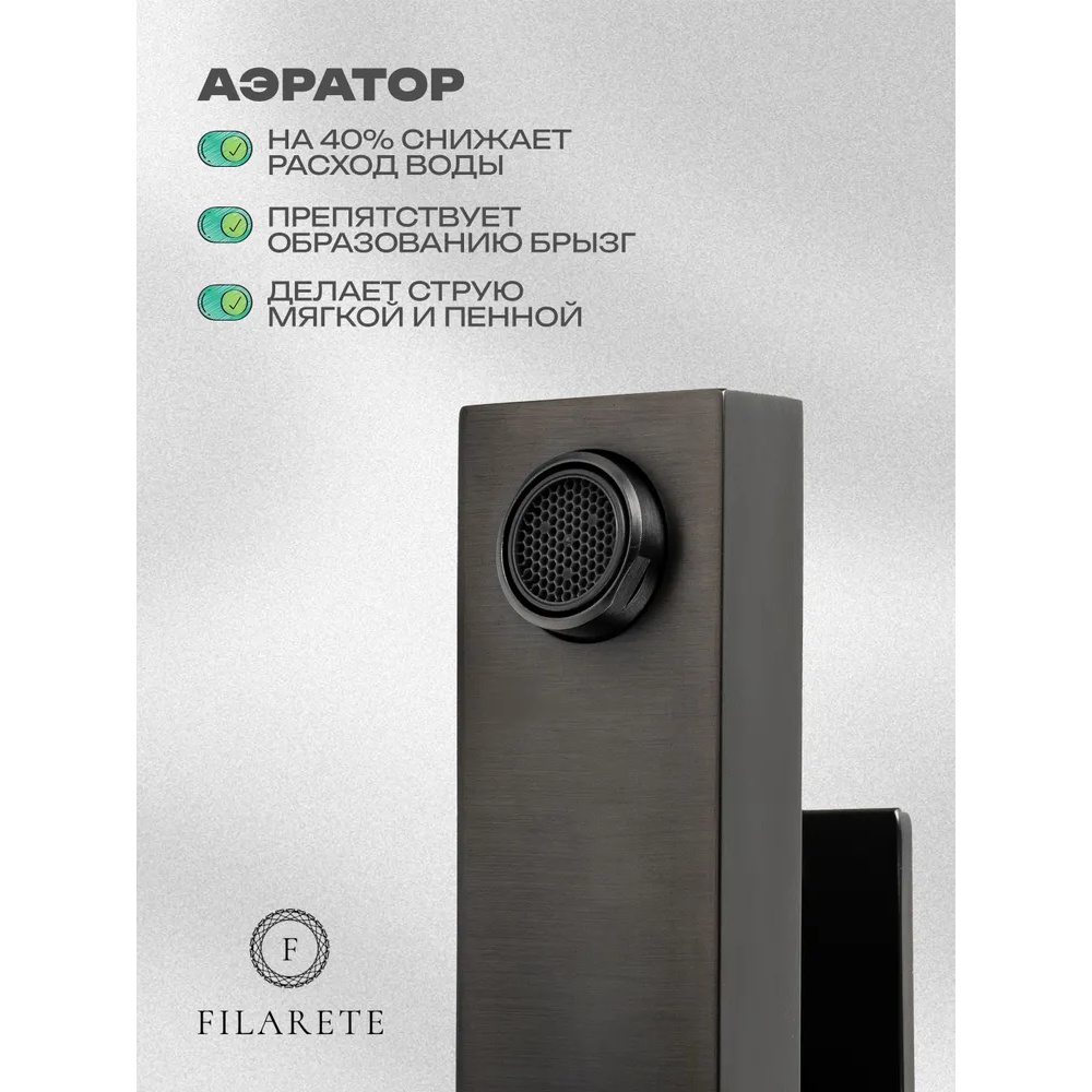 Смеситель для раковины высокий FILARETE Fing FL6040BG, графит. Гарантийный срок: 7 лет. Управление: рычажное. Стилистика дизайна: современный стиль. Материал: латунь. Монтаж: на столешницу.