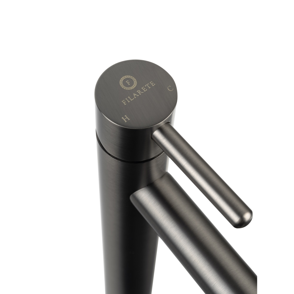 Смеситель для раковины высокий FILARETE Roun FL6020BG, графит. Гарантийный срок: 7 лет. Управление: рычажное. Стилистика дизайна: современный стиль. Материал: латунь. Монтаж: на столешницу.