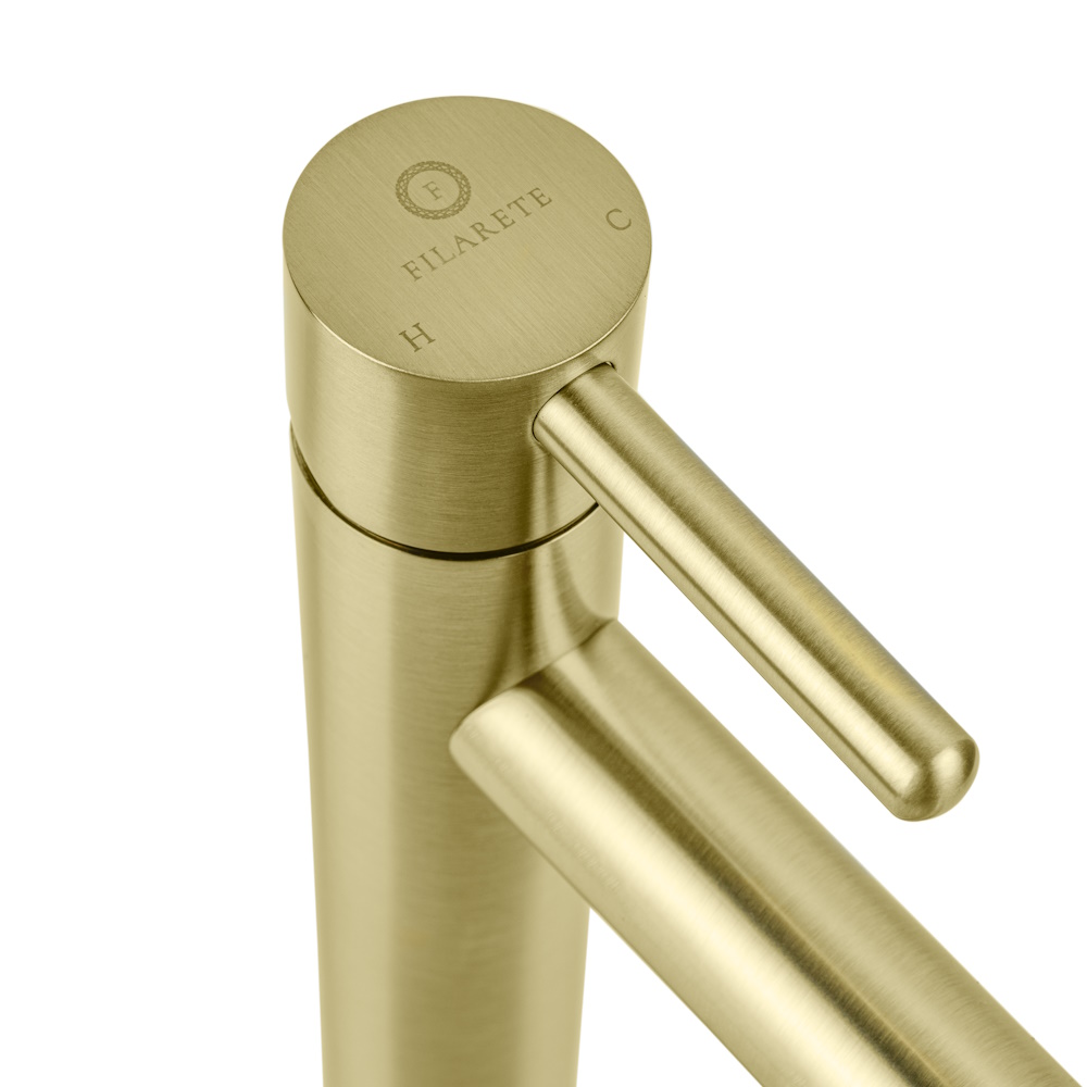 Смеситель для раковины высокий FILARETE Roun FL6020MG, матовое золото. Гарантийный срок: 7 лет. Управление: рычажное. Стилистика дизайна: современный стиль. Материал: латунь. Монтаж: на столешницу.