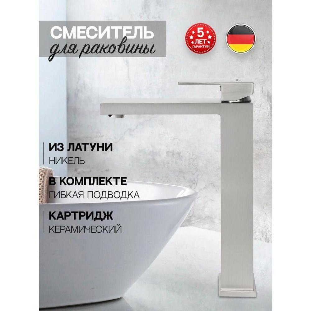 Смеситель для раковины высокий Hansberge H2070NK, никель