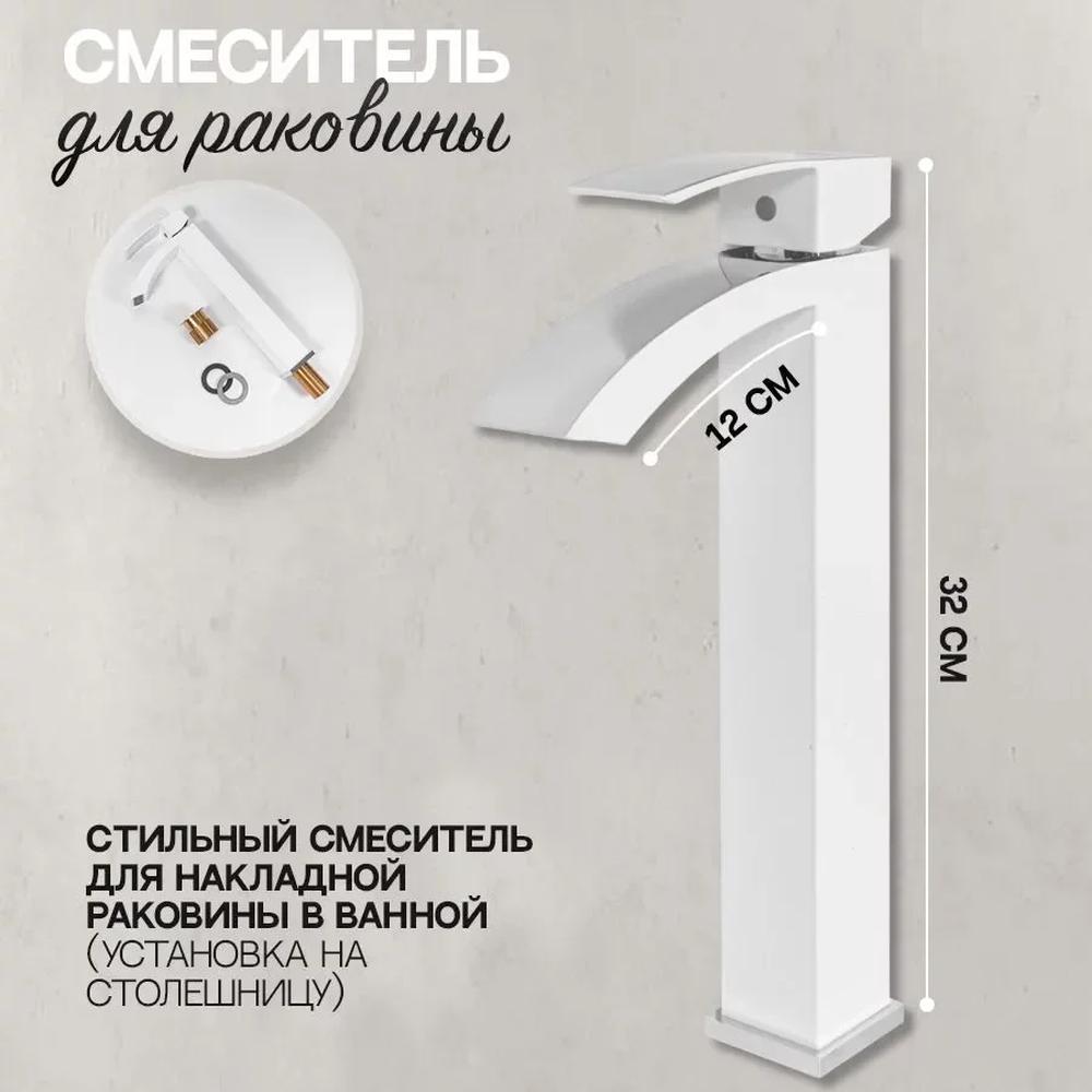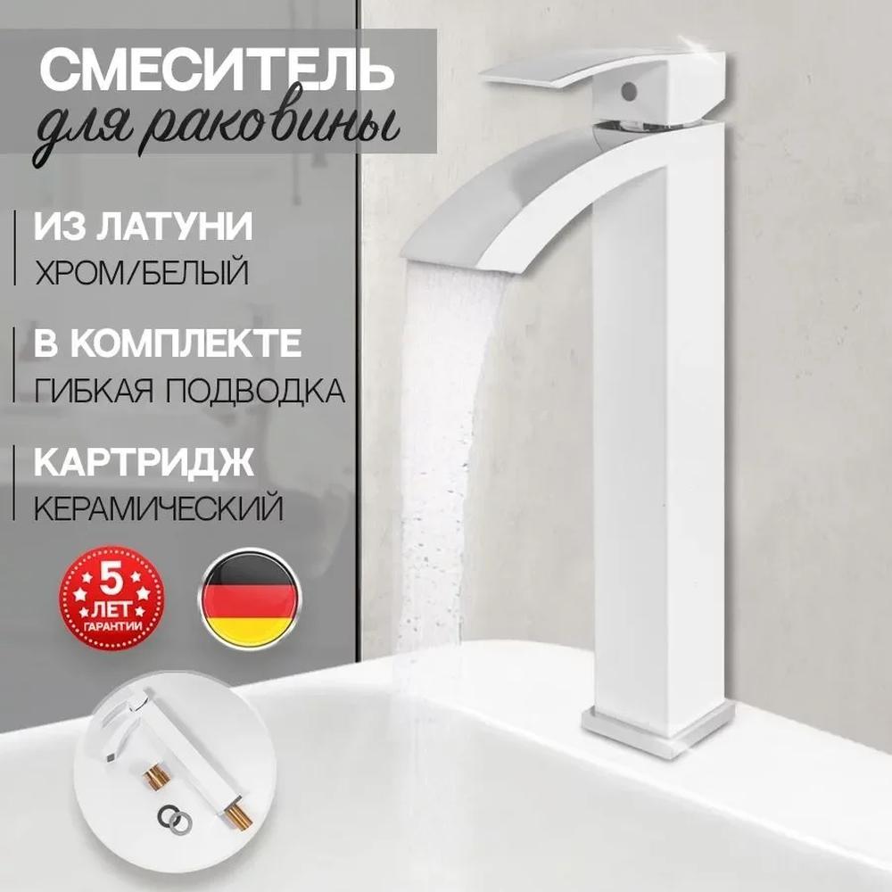 Смеситель для раковины высокий Hansberge H2077W, белый/хром