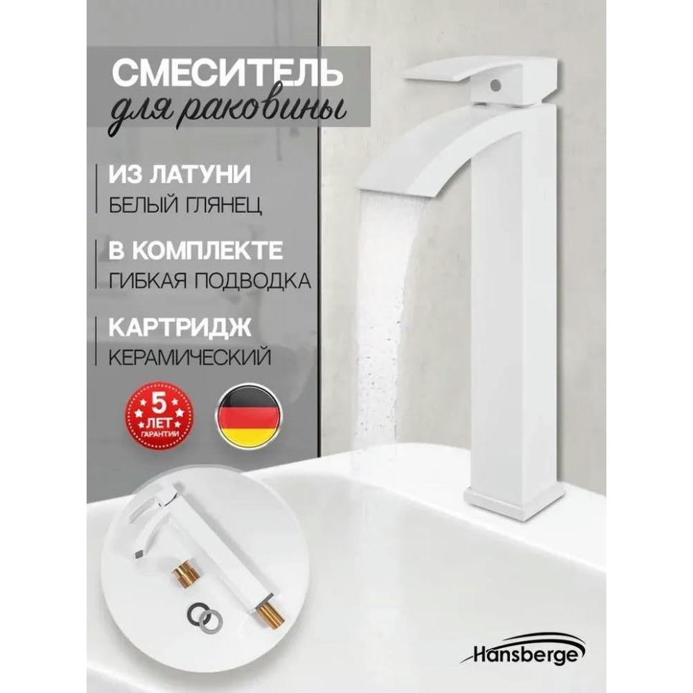 Смеситель для раковины высокий Hansberge H2077WW, белый