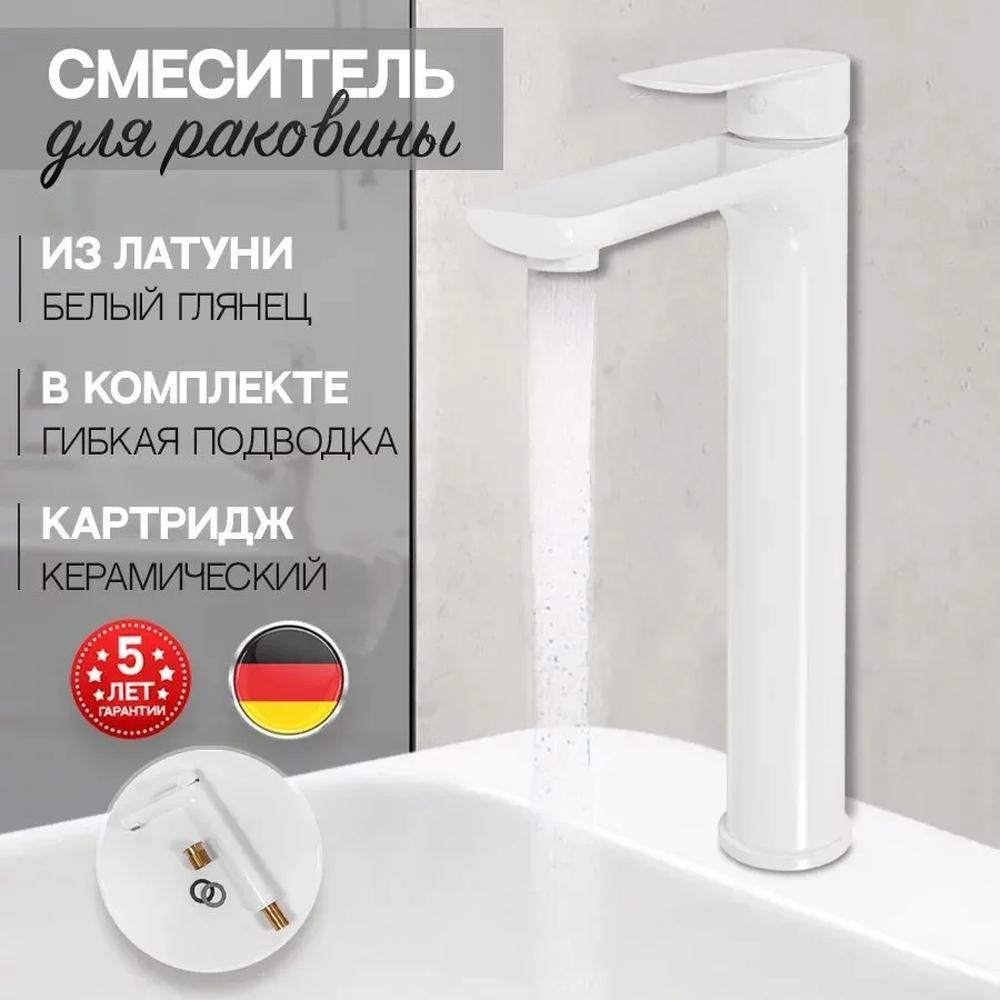Смеситель для раковины высокий Hansberge H2099WW, белый