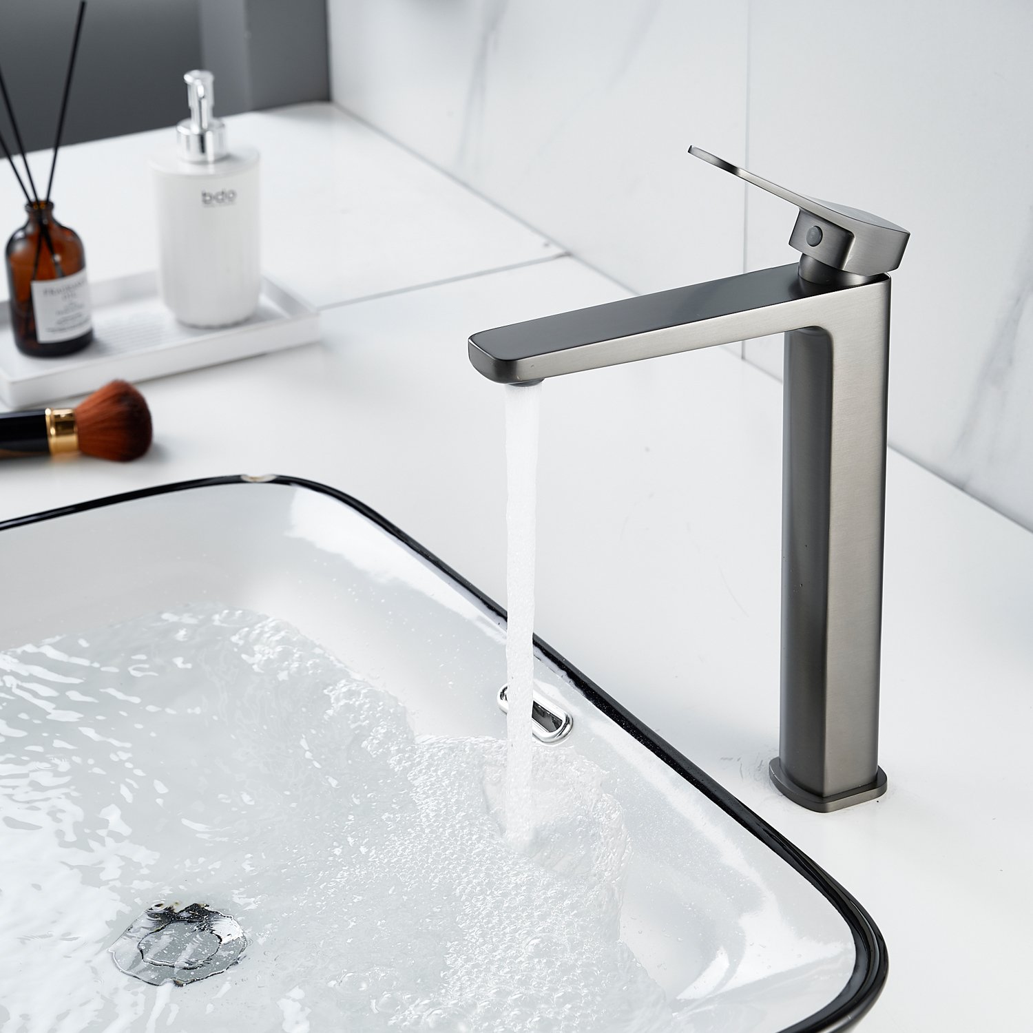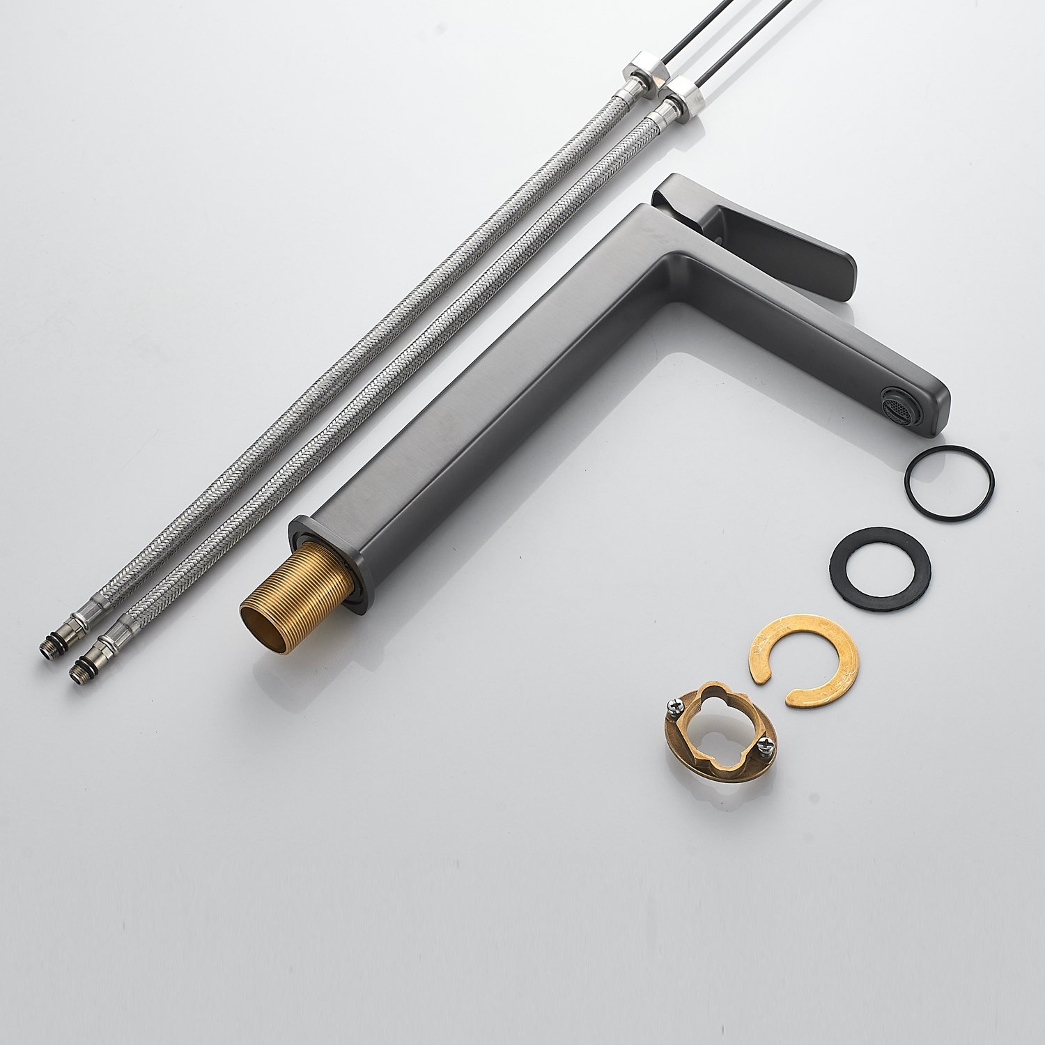 Смеситель для раковины Raffine F1199T в цвете "оружейная сталь" — это стильное и надёжное решение для вашей ванной комнаты. Изготовленный из высококачественной латуни, он обладает прочностью и долговечностью. Аэратор позволяет экономить воду, а керамический картридж обеспечивает плавное и точное регулирование температуры и напора воды. Благодаря высокому изливу, смеситель идеально подходит для раковин-чаш. В комплекте идёт гибкая подводка, облегчающая монтаж. Гарантия на изделие составляет 5 лет.