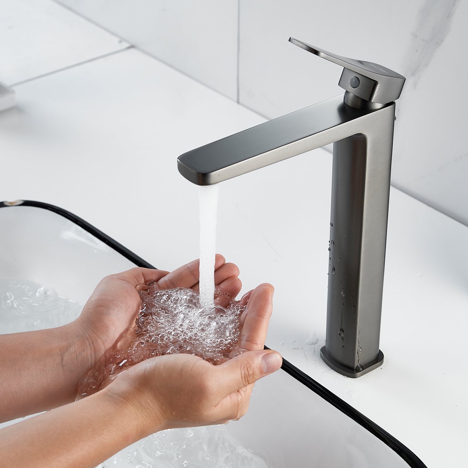 Смеситель для раковины высокий Raffine F1199T, оружейная сталь