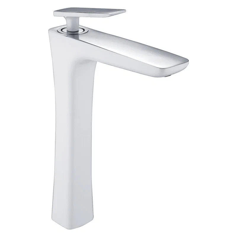 Смеситель для раковины высокий Rose R16F R1611F, белый/хром. Материал: латунь. Управление: рычажное. Стилистика дизайна: Современный стиль. Подводка: гибкая, 1/2" .