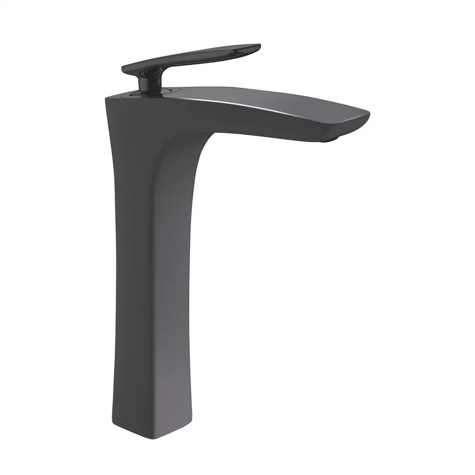 Смеситель для раковины высокий Rose R27H R2711H, черный. Материал: латунь. Управление: рычажное. Стилистика дизайна: Современный стиль. Подводка: гибкая, 1/2" .