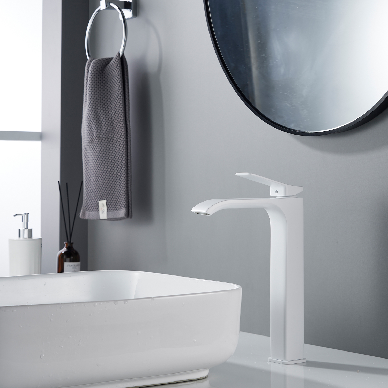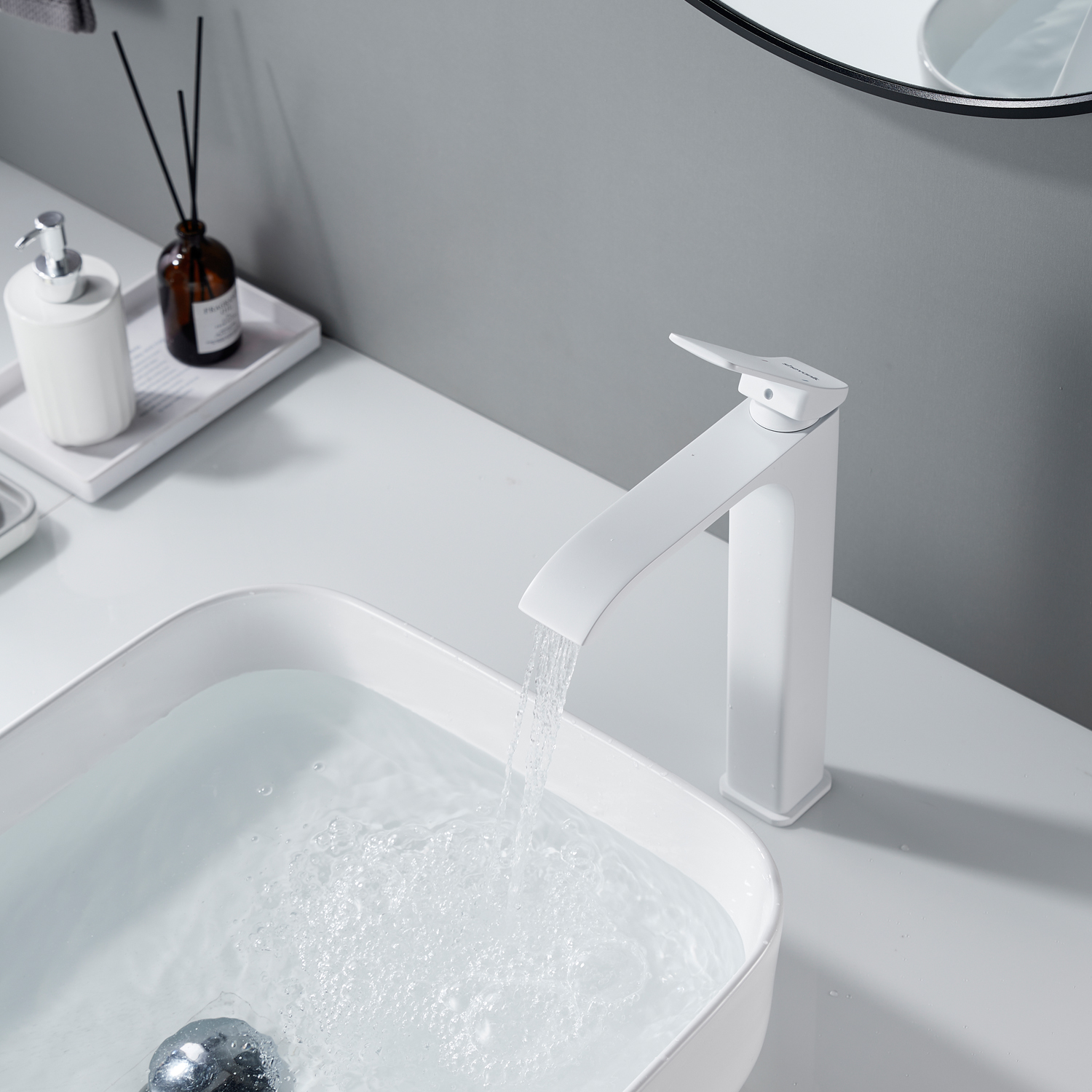 Высокий смеситель для раковины чаши Shevanik S4011C в белом матовом цвете – идеальное решение для современной ванной комнаты. Изготовлен из высококачественной латуни, этот смеситель отличается прочностью и долговечностью. Фиксированный излив обеспечивает удобство использования, а аэратор способствует экономии воды и формированию мягкой, приятной на ощупь струи. Керамический картридж обеспечивает плавное управление потоком воды, а рычажный механизм делает настройку температуры воды быстрой и удобной. Стандарт подключения 1/2" и наличие гибкой подводки в комплекте облегчают установку смесителя. Пятилетняя гарантия подтверждает высокое качество и надежность этого смесителя.