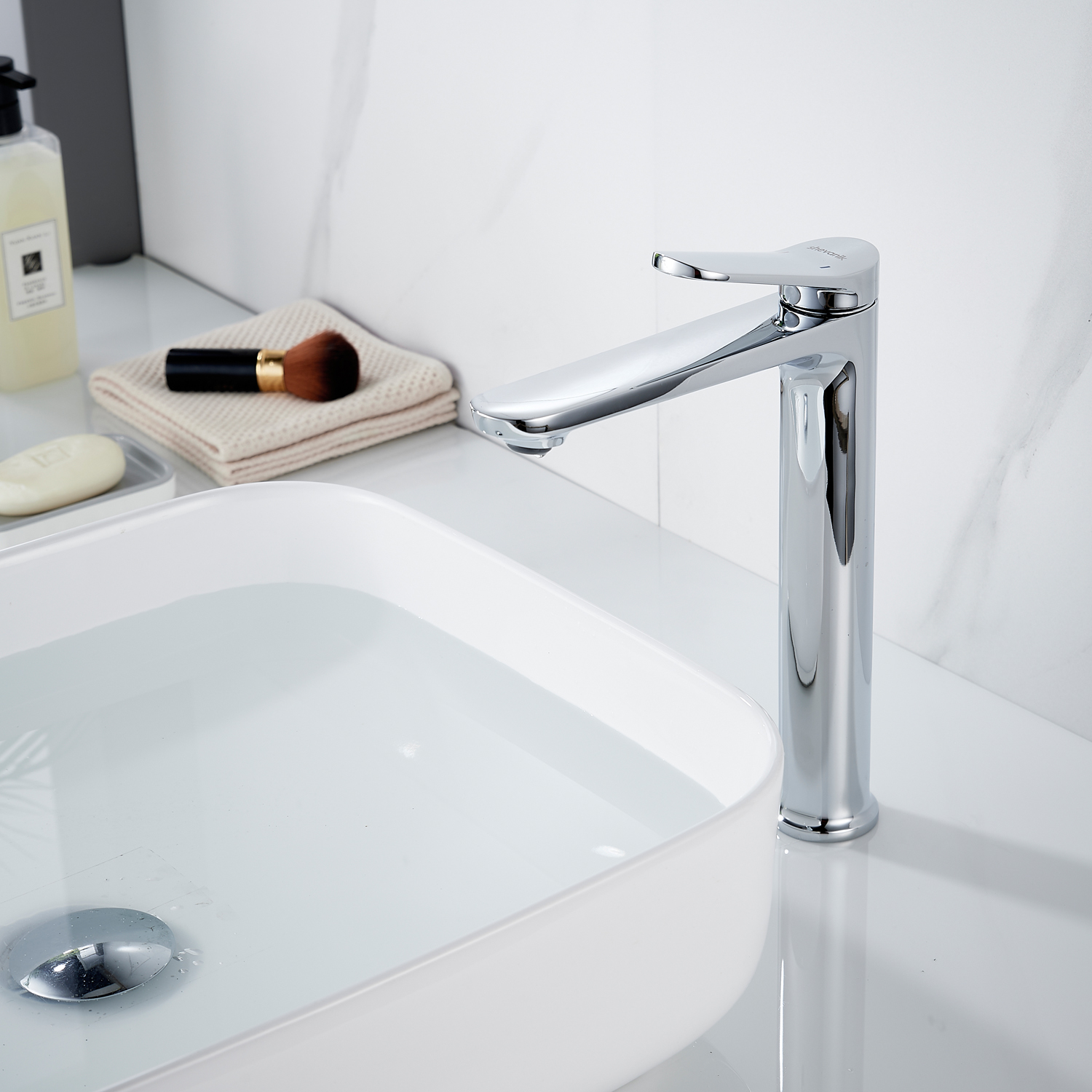Высокий смеситель для раковины Shevanik S4311 в цвете хром — идеальное решение для современных интерьеров, особенно для раковин-чаш. Его современный дизайн с плавными линиями придаст вашей ванной комнате элегантность и стиль. Смеситель оснащён надёжным керамическим картриджем и удобным рычажным управлением, что обеспечивает долговечность и простоту использования.