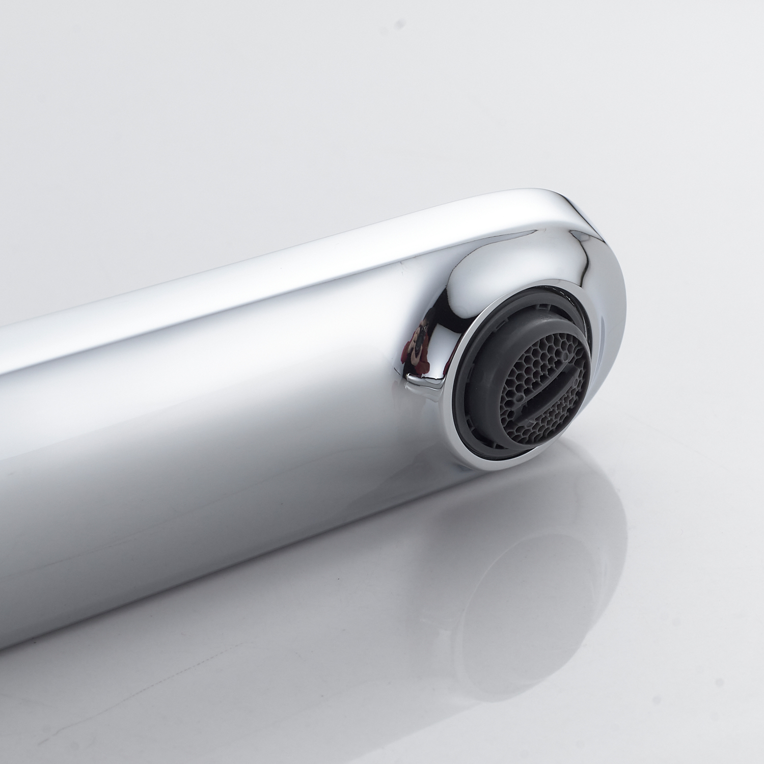 Изготовленный из прочной латуни, он гарантирует высокую устойчивость к коррозии и долгий срок службы. Фиксированный излив смесителя оборудован аэратором, который способствует экономии воды и созданию мягкого, комфортного потока.