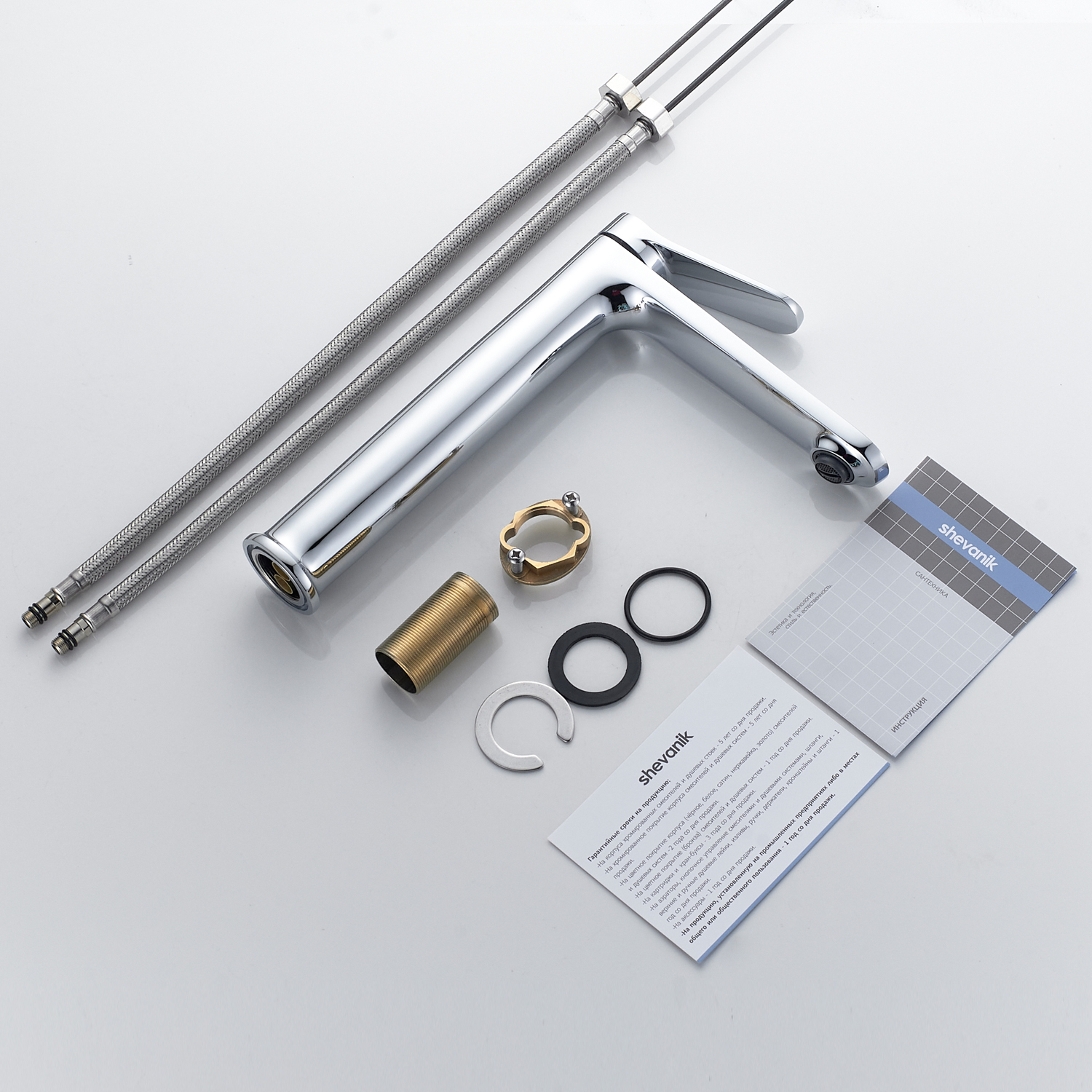 Установка смесителя осуществляется при помощи гайки, а в комплекте уже идёт гибкая подводка длиной 40 см с стандартным размером 1/2". Погрузитесь в мир идеального сочетания качества и функциональности с высоким смесителем для раковины Shevanik S4311, на который предоставляется 5-летняя гарантия.