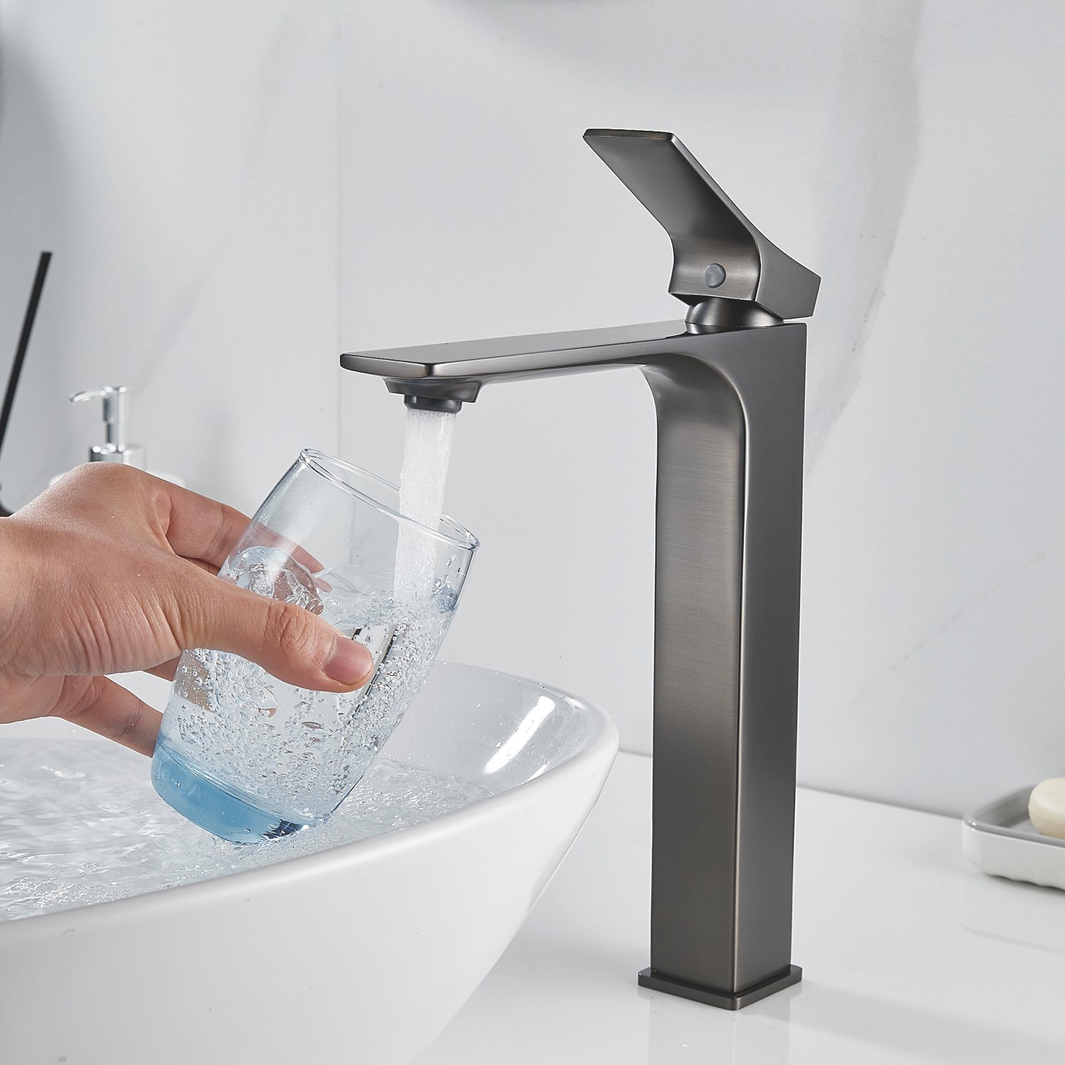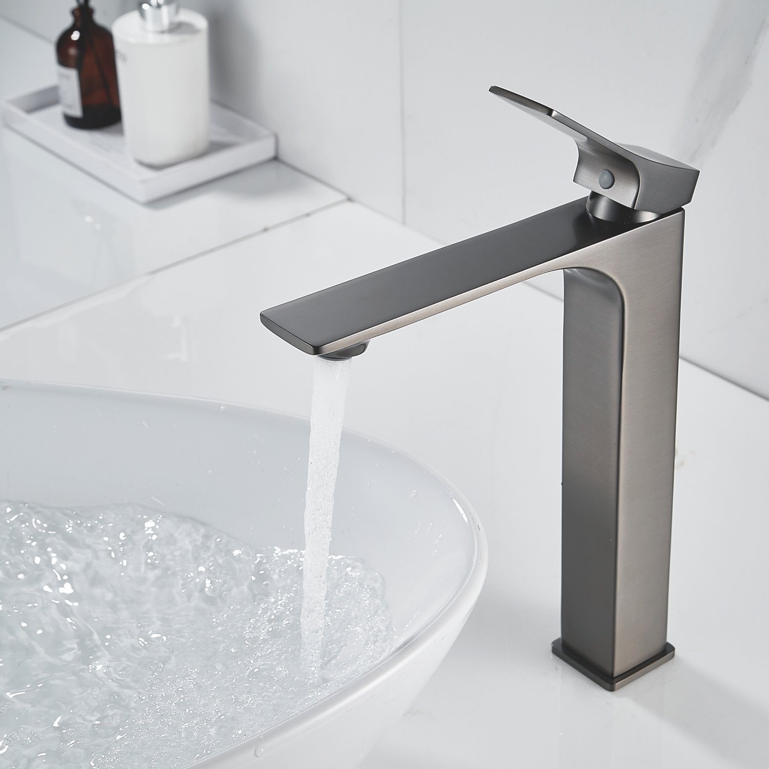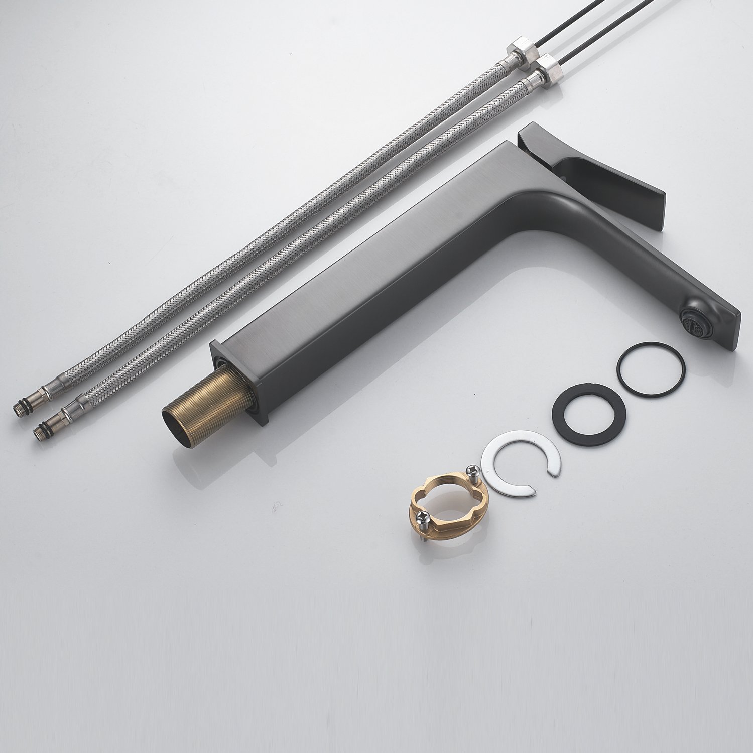 Смеситель для раковины высокий Shevanik S6111T, оружейная сталь