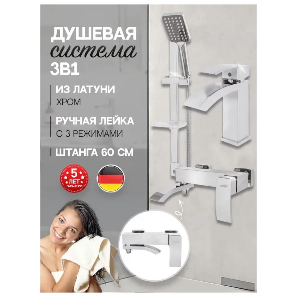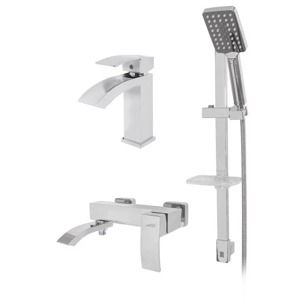 смеситель для раковины, смесителья для ванны, штанга для душа с держателем лейки, душевая лейка, шланг для душа