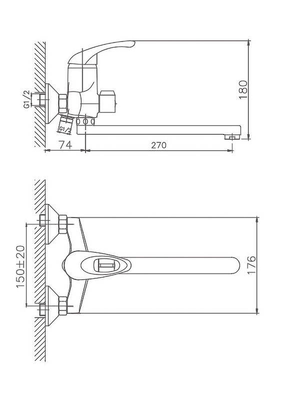 Смеситель, шланг, душевая лейка, держатель душевой лейки, эксцентрики, инструкция