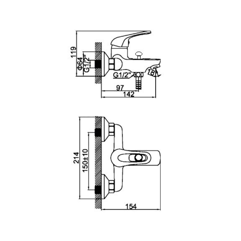 Смеситель, шланг, душевая лейка, держатель душевой лейки, эксцентрики, инструкция