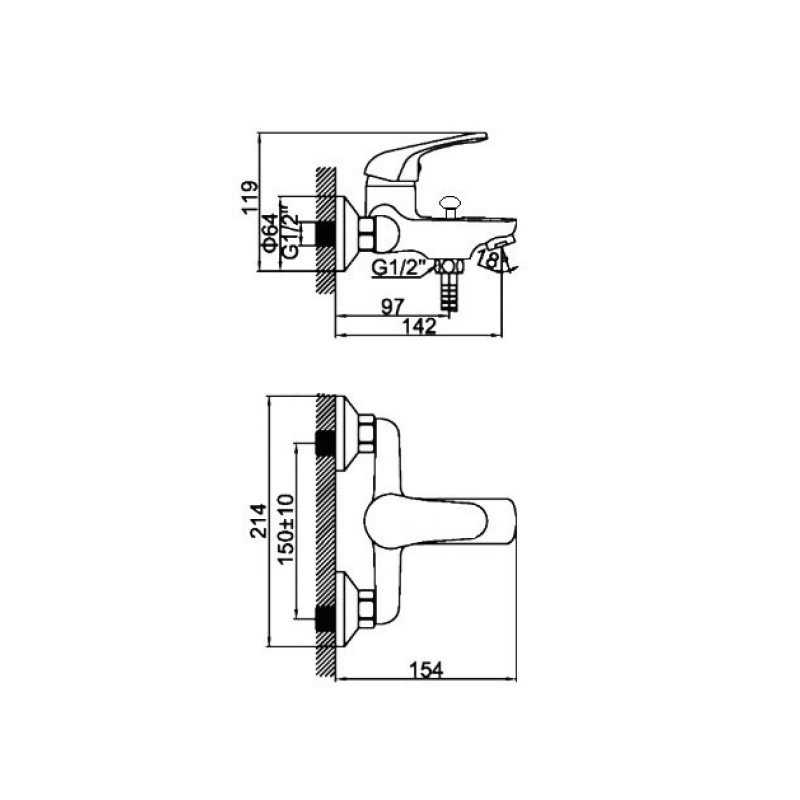 Смеситель, шланг, душевая лейка, держатель душевой лейки, эксцентрики, инструкция