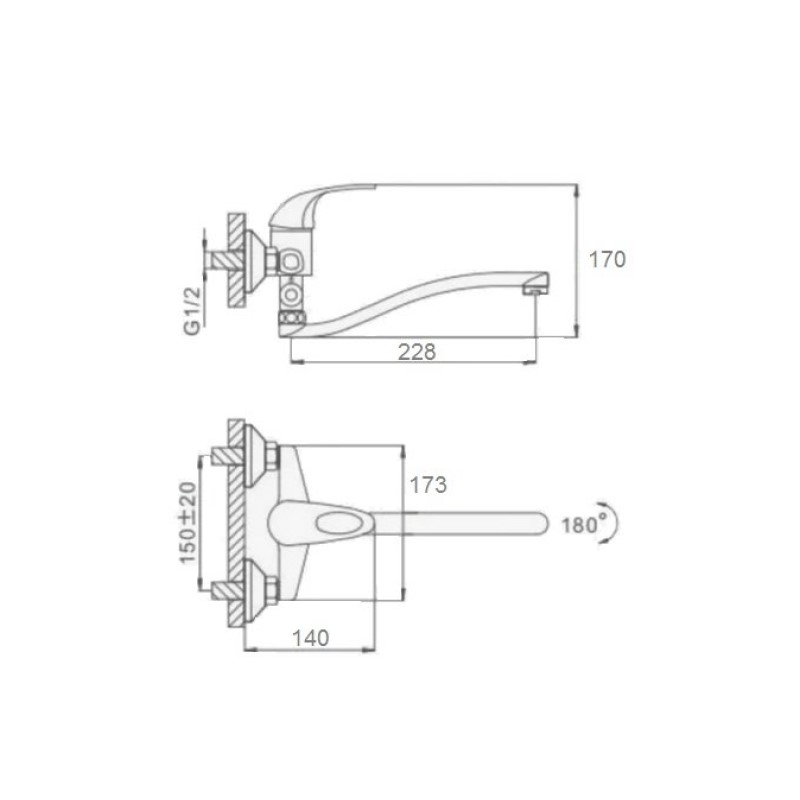 Смеситель, шланг, душевая лейка, держатель душевой лейки, эксцентрики, инструкция