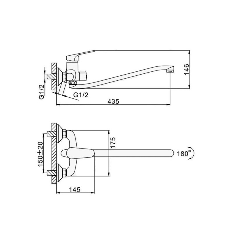 Смеситель, шланг, душевая лейка, держатель душевой лейки, эксцентрики, инструкция