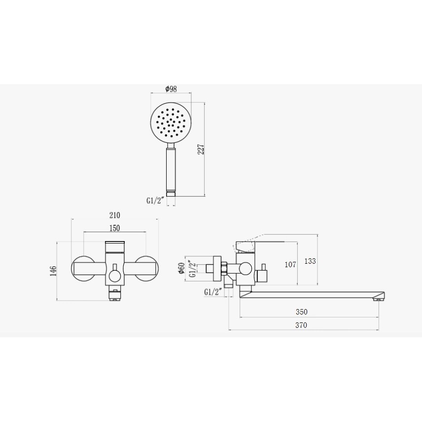 Смеситель, шланг, душевая лейка, держатель душевой лейки, эксцентрики, инструкция