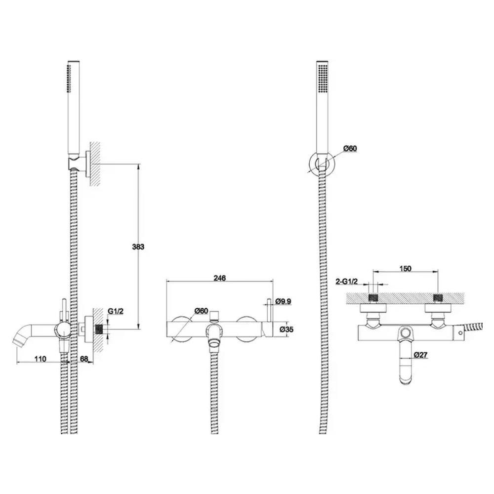 смеситель, шланг, душевая лейка, держатель душевой лейки, эксцентрики, отражатели