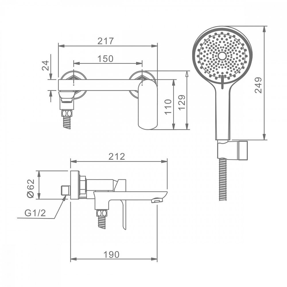 смеситель, шланг, душевая лейка, держатель душевой лейки, эксцентрики, отражатели