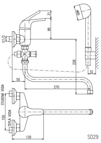 Rav Slezak Sazava SA056.5/1 смеситель для ванны. Круглый кран. Поворотный излив,душ в комплекте. Шланг - 150 см. Стабильный держатель лейки. Установка на стену.