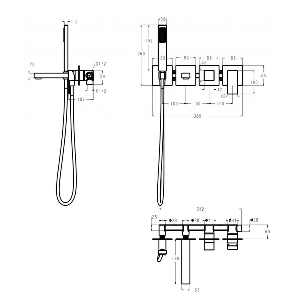 смеситель, внутренняя часть, излив, шланговое подключение с держателем лейки, шланг, лейка, переключатель потоков
