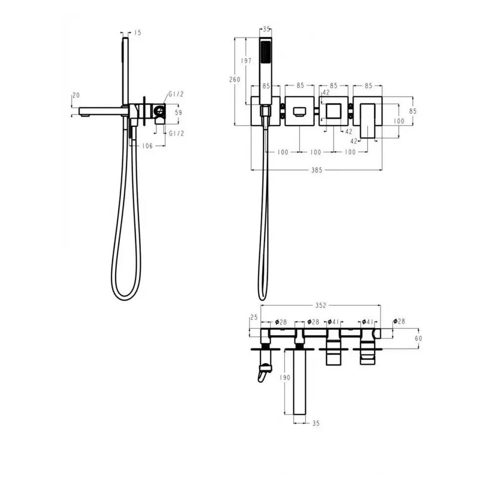 смеситель, внутренняя часть, излив, шланговое подключение с держателем лейки, шланг, лейка, переключатель потоков