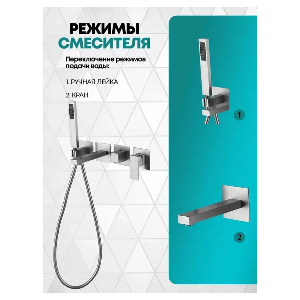 смеситель, внутренняя часть, излив, шланговое подключение с держателем лейки, шланг, лейка, переключатель потоков