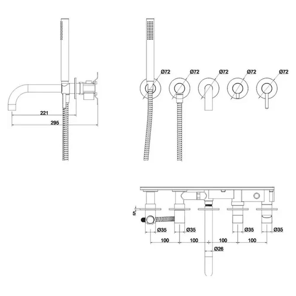 смеситель, внутренняя часть, излив, шланговое подключение с держателем лейки, шланг, лейка, переключатель потоков