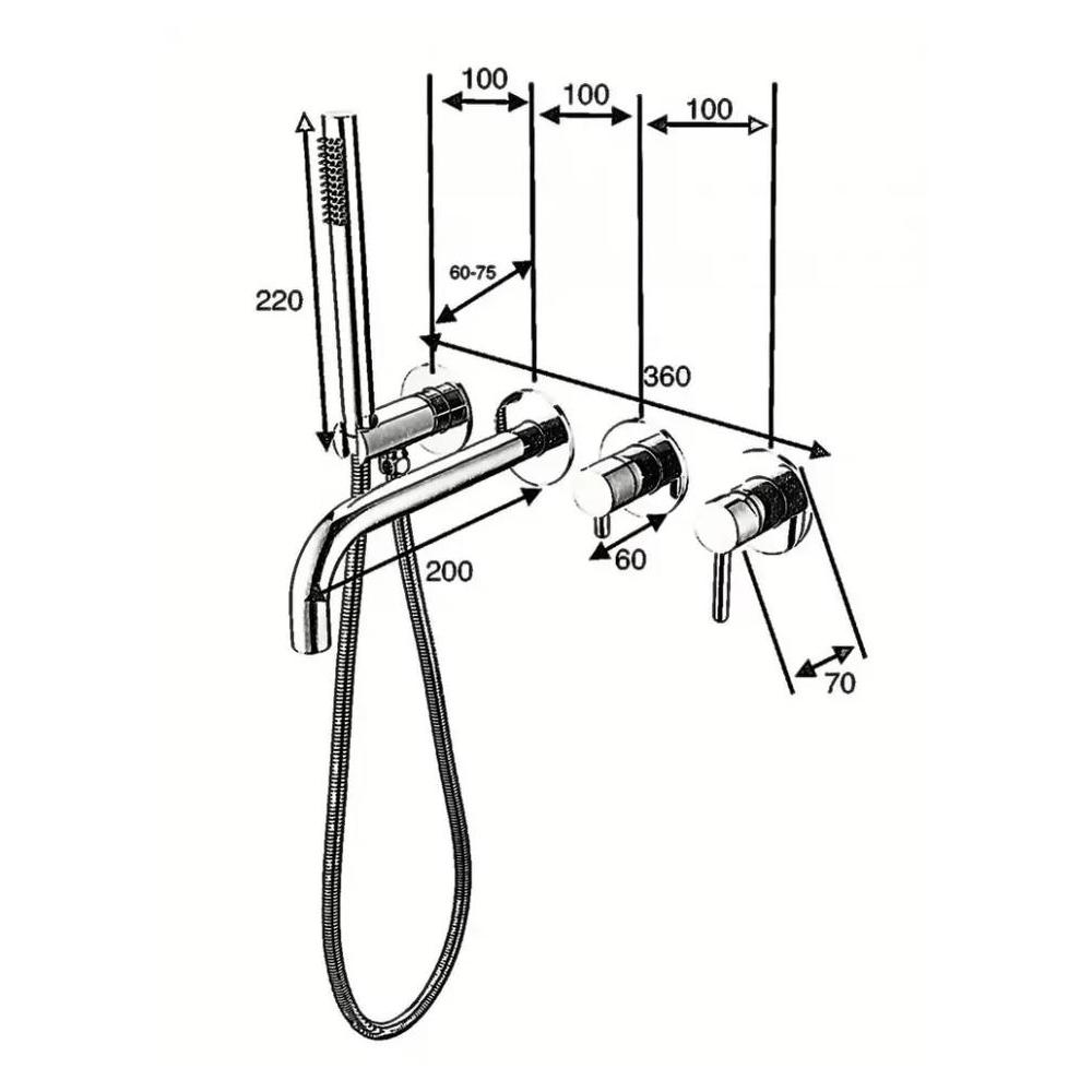смеситель, внутренняя часть, излив, шланговое подключение с держателем лейки, шланг, лейка, переключатель потоков