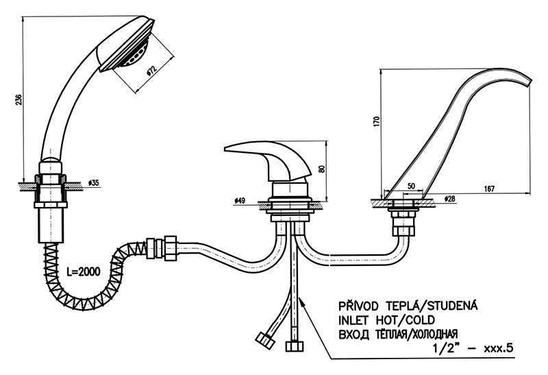 Смеситель на борт ванны Rav Slezak Dunaj D461.5Y монолитный, с душевым гарнитуром, изготовлен из высококачественной латуни, которая исключает какую-либо коррозию. Латунные рукоятки. Качественный керамический картридж 40 мм Kerox, производство Венгрия, гарантирует долговечность и мягкий поток воды. При открытии ручки и поворота влево рычага вода вытекает из излива, а вправо - из душевой лейки. Пластиковый шланг с пружиной, которая обеспечивает лёгкое возвращение шланга в держатель. Длина шланга 2000 мм. Пластиковая душевая лейка с пятью режимами, с антикальк резиновыми насадками. В комплекте смеситель, шланг, душевая лейка и комплект крепления.