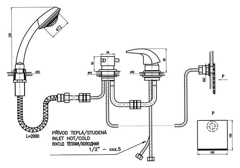 Смеситель на борт ванны Rav Slezak Dunaj D463.5P с душевым гарнитуром, изготовлен из высококачественной латуни, которая исключает какую-либо коррозию. Излив монтируется в ванну. Латунные рукоятки. Качественный керамический картридж 40 мм Kerox, производство Венгрия, гарантирует долговечность и мягкий поток воды. Керамический переключатель душ/излив. Пластиковый шланг с пружиной, которая обеспечивает лёгкое возвращение шланга в держатель. Длина шланга 2000 мм. Пластиковая душевая лейка с пятью режимами, с антикальк резиновыми насадками. В комплекте смеситель, шланг, душевая лейка и комплект крепления.