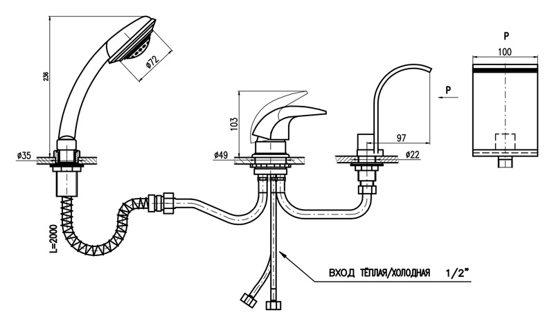 Смеситель на борт ванны Rav Slezak Dunaj D467.5Y монолитный, с душевым гарнитуром, изготовлен из высококачественной латуни, которая исключает какую-либо коррозию. Латунные рукоятки. Качественный керамический картридж 40 мм Kerox, производство Венгрия, гарантирует долговечность и мягкий поток воды. При открытии ручки и поворота влево рычага вода вытекает из излива, а вправо- из душевой лейки. Пластиковый шланг с пружиной, которая обеспечивает лёгкое возвращение шланга в держатель. Длина шланга 2000 мм. Пластиковая душевая лейка с пятью режимами, с антикальк резиновыми насадками. В комплекте смеситель, шланг, душевая лейка и комплект крепления.