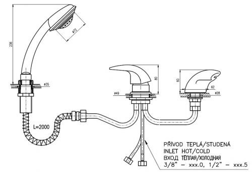 Смеситель на борт ванны Rav Slezak Dunaj D470.5Y монолитный, с душевым гарнитуром, изготовлен из высококачественной латуни, которая исключает какую-либо коррозию. Латунные рукоятки. Качественный керамический картридж 40 мм Kerox, производство Венгрия, гарантирует долговечность и мягкий поток воды. При открытии ручки и поворота влево рычага вода вытекает из излива, а вправо- из душевой лейки. Пластиковый шланг с пружиной, которая обеспечивает лёгкое возвращение шланга в держатель. Длина шланга 2000 мм. Пластиковая душевая лейка с пятью режимами, с антикальк резиновыми насадками. В комплекте смеситель, шланг, душевая лейка и комплект крепления.