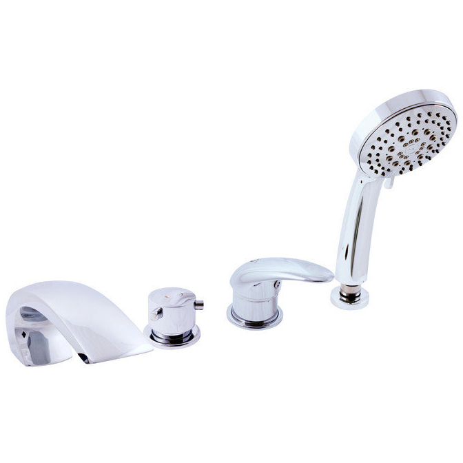 Rav Slezak Dunaj D472.5P каскадный смеситель для ванны. Врезной на 4 отверстия. В состав комплекта входит: переключатель керамический MD0448.5 и душевой шланг с пружиной. Монтаж на борт ванны и плиточный бортик.