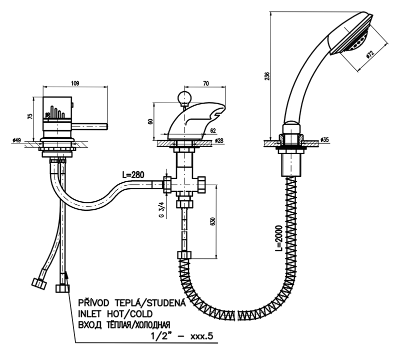 Термостат на борт ванны Rav Slezak Dunaj Termostat DT270.5S монолитный, с душевым гарнитуром, изготовлен из высококачественной латуни, которая исключает какую-либо коррозию. Латунные рукоятки. Качественный керамический термостатический картридж 40 мм Kerox, производство Венгрия, гарантирует долговечность и мягкий поток воды. Пластиковый шланг с пружиной, которая обеспечивает лёгкое возвращение шланга в держатель. Длина шланга 2000 мм. Пластиковая душевая лейка с четырьмя режимами, с антикальк резиновыми насадками. В комплекте смеситель, шланг, душевая лейка и комплект крепления.