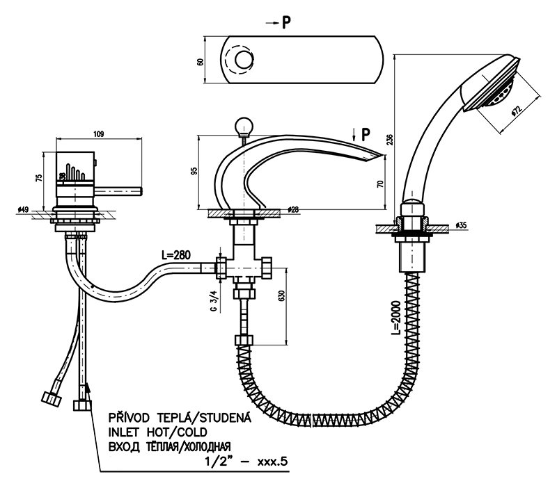 Термостат на борт ванны Rav Slezak Dunaj Termostat DT272.5S с душевым гарнитуром, изготовлен из высококачественной латуни, которая исключает какую-либо коррозию. Латунные рукоятки. Качественный керамический термостатический картридж 40 мм Kerox, производство Венгрия, гарантирует долговечность и мягкий поток воды. Переключатель душ/излив в изливе. Пластиковый шланг с пружиной, которая обеспечивает лёгкое возвращение шланга в держатель. Длина шланга 2000 мм. Пластиковая душевая лейка с четырьмя режимами, с антикальк резиновыми насадками. В комплекте смеситель, шланг, душевая лейка и комплект крепления.