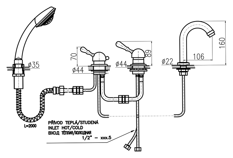 Смеситель на борт ванны Rav Slezak Labe L562.5PSM монолитный, с душевым гарнитуром, изготовлен из высококачественной латуни, которая исключает какую-либо коррозию. Латунные рукоятки. Качественный керамический картридж 35 мм Kerox, производство Венгрия, гарантирует долговечность и мягкий поток воды. Керамический переключатель душ/излив. Металлический шланг с пружиной, которая обеспечивает лёгкое возвращение шланга в держатель. Длина шланга 2000 мм. Пластиковая душевая лейка с тремя режимами, с антикальк резиновыми насадками. В комплекте смеситель, шланг, душевая лейка и комплект крепления.