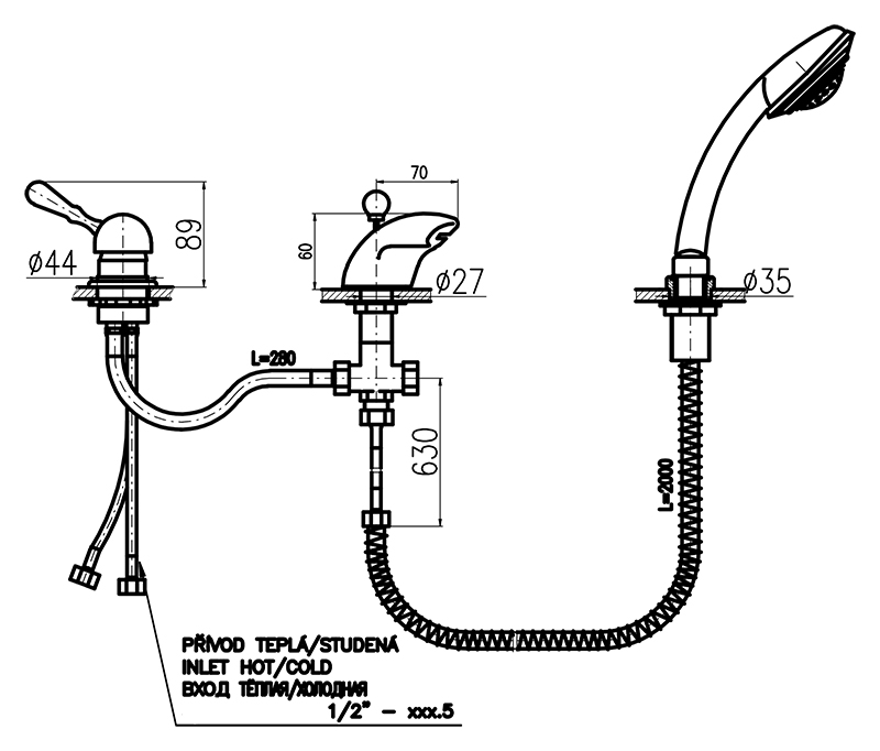Смеситель на борт ванны Rav Slezak Labe L570.5S монолитный, с душевым гарнитуром, изготовлен из высококачественной латуни, которая исключает какую-либо коррозию. Латунные рукоятки. Качественный керамический картридж 35 мм Kerox, производство Венгрия, гарантирует долговечность и мягкий поток воды. Переключатель душ/излив в изливе. Металлический шланг с пружиной, которая обеспечивает лёгкое возвращение шланга в держатель. Длина шланга 2000 мм. Пластиковая душевая лейка с тремя режимами, с антикальк резиновыми насадками. В комплекте смеситель, шланг, душевая лейка и комплект крепления.